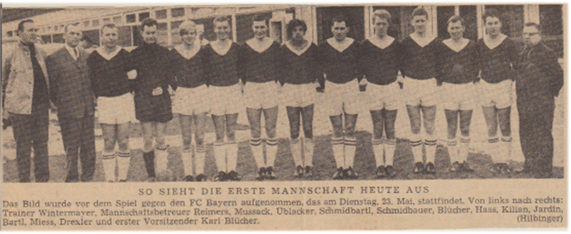 Für den FC Bayern München spielten: Adi Kunstwadl, Sepp Maier, Franz Beckenbauer, Peter Kupferschmidt, Werner Olk, Jakob Dreschler, Rudi Nafziger, Rainer Ohlhauser, Gerd Müller, Dieter Koulmann und Dieter Brenninger. Trainer damals: Zlatko ‚Tschik’ Cajkovski, Vorstand Robert Schwan.