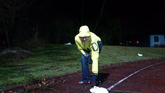Der Plan war pfiffig: LVS-Training am Feierabend unter Flutlicht vor der Haustür auf dem genialen selfmade-Suchfeld. Nur den peitschenden Starkregen hat keiner bestellt!!
