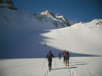 Der Firn war spezial. Da wir als Frühstarter unterwegs waren, konnten wir die Harscheisen, beim Anstieg, bzw. unseren Kantengriff bei der Abfahrt voll zum Einsatz bringen. Der Anstieg war gefühlt 2000Hm, die Abfahrt 500Hm. Grad schee wars.
