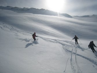 Eiskalt wars - macht nix, wenn man dafür alle Touren spuren darf - wann gibts das heute noch! Kreuzspitze (2746m), Viggarspitze (2306m) und der eigentlich recht bekannte Morgenkogel (2607m) stehen nun im Tourenbuch. Und im Gedächtnis bleiben zügige Abfahrten in unberührtem Powder mit einer sehr netten Tourengang!