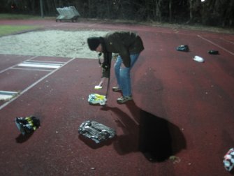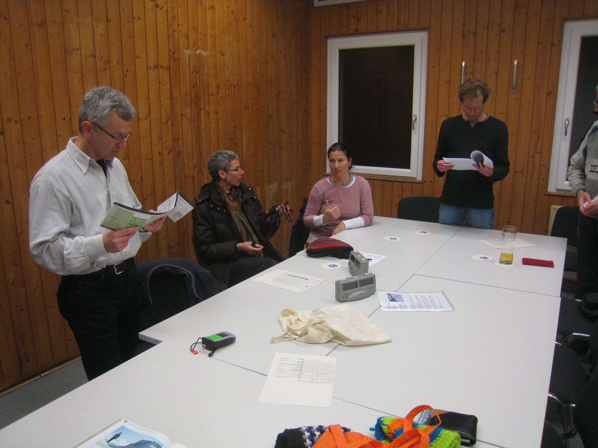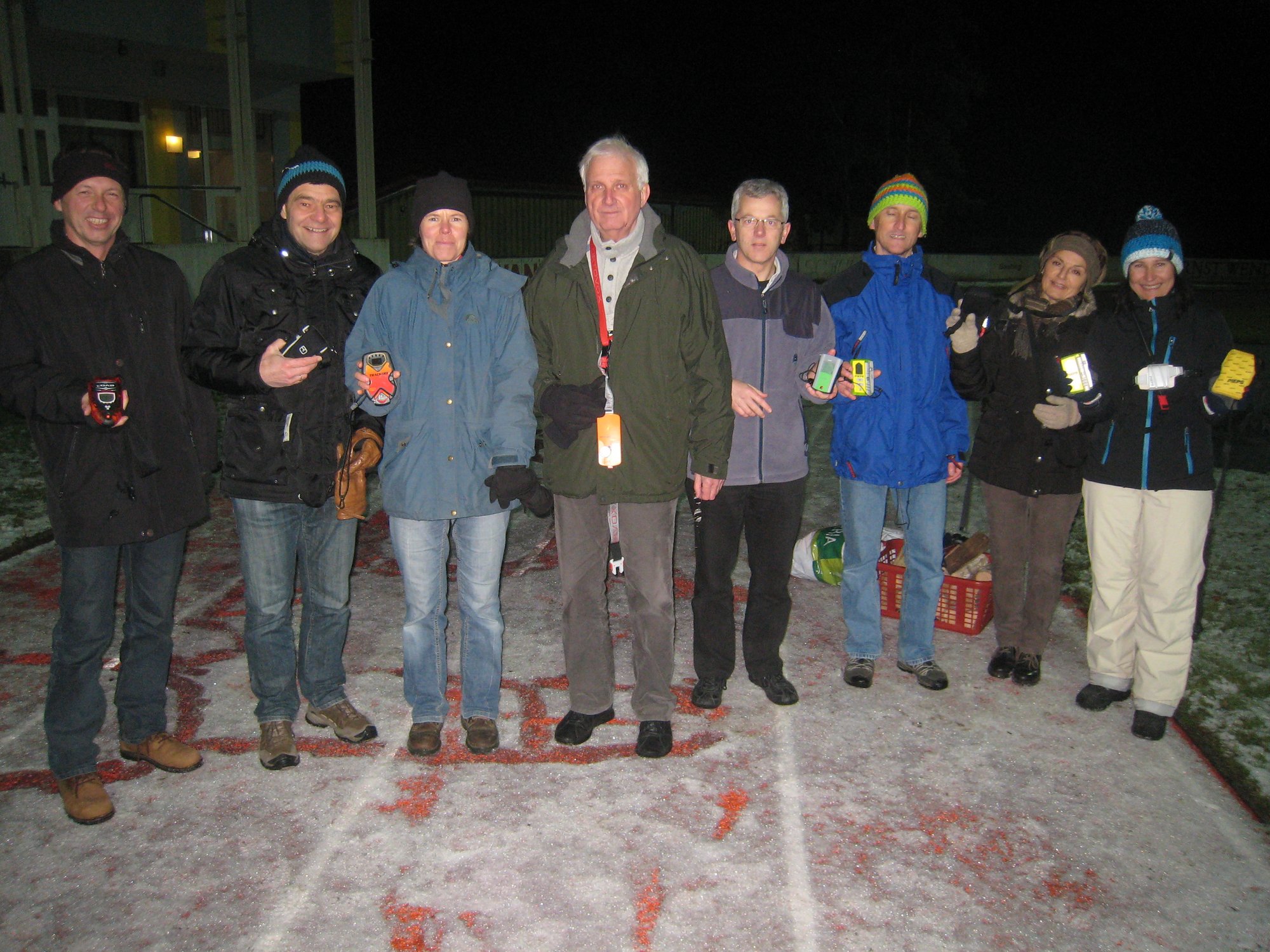 Von so Nebensächlichkeiten wie fehlendem Schnee lassen sich 15 Tourengeher nicht abhalten. Nach einem workshop, in dem zusammen das richtige Verhalten bei einem Lawinenabgang erarbeitet wurde, gings unter Flutlicht raus auf den Trainingsplatz. In der genialen Pieps-Suchanlage - bestehend aus ca. 50 Plastiktüten mit Holzscheitln - wurde kräftig gesucht und meistens auch gefunden!
