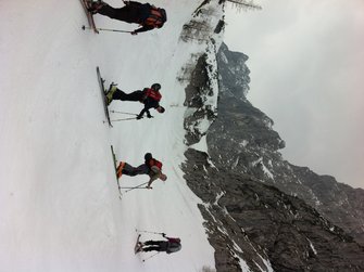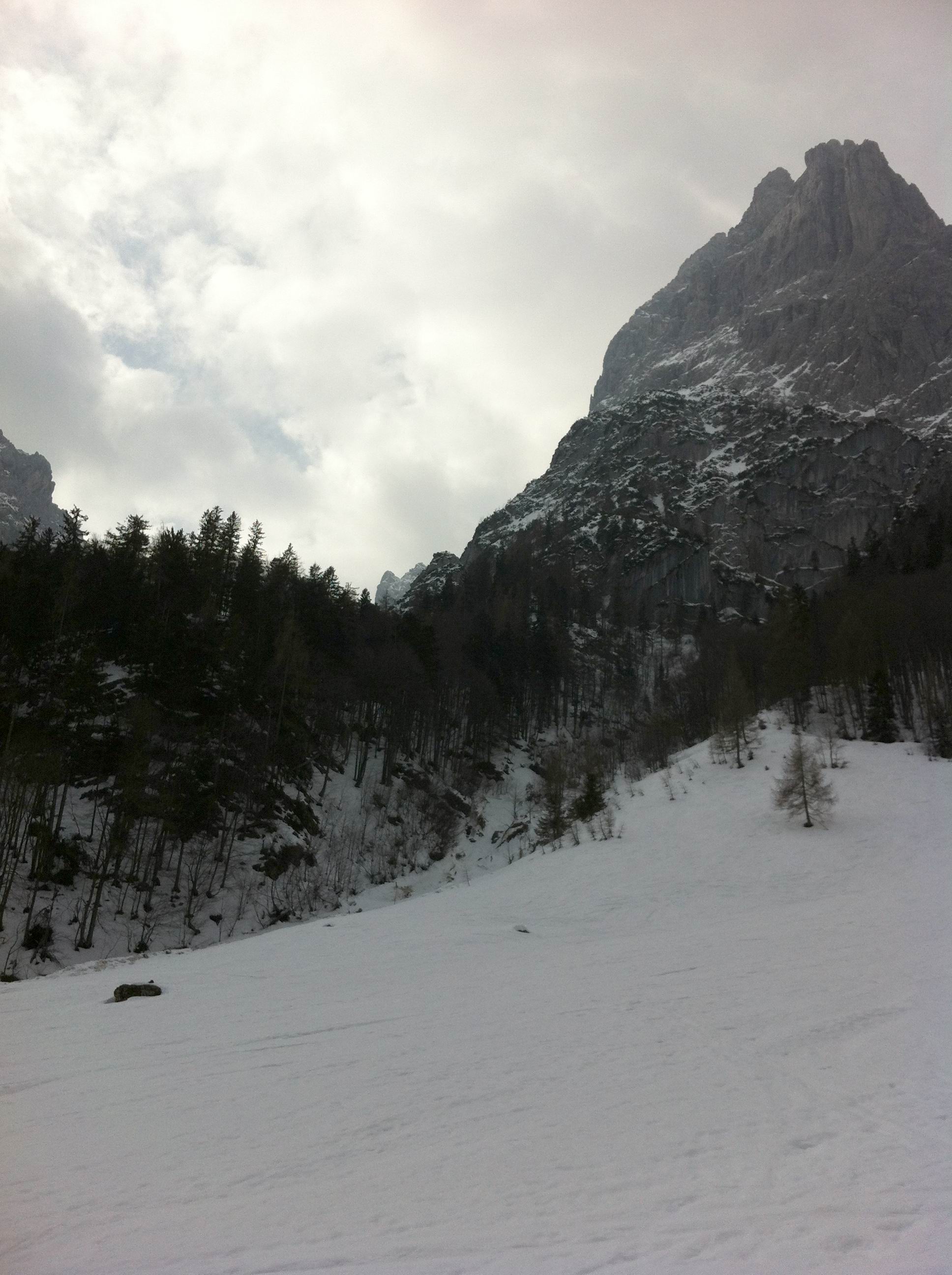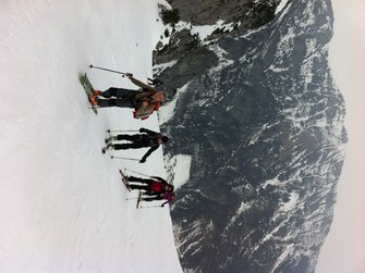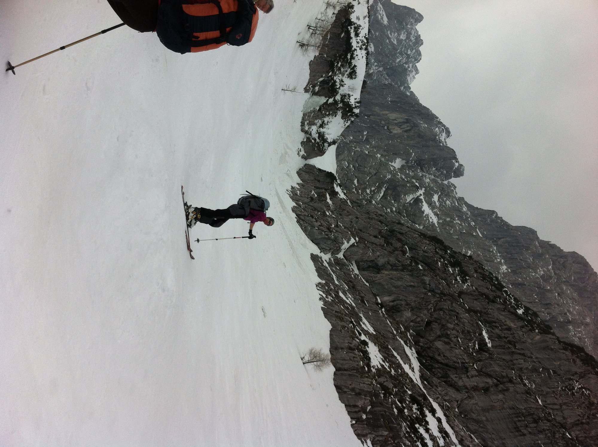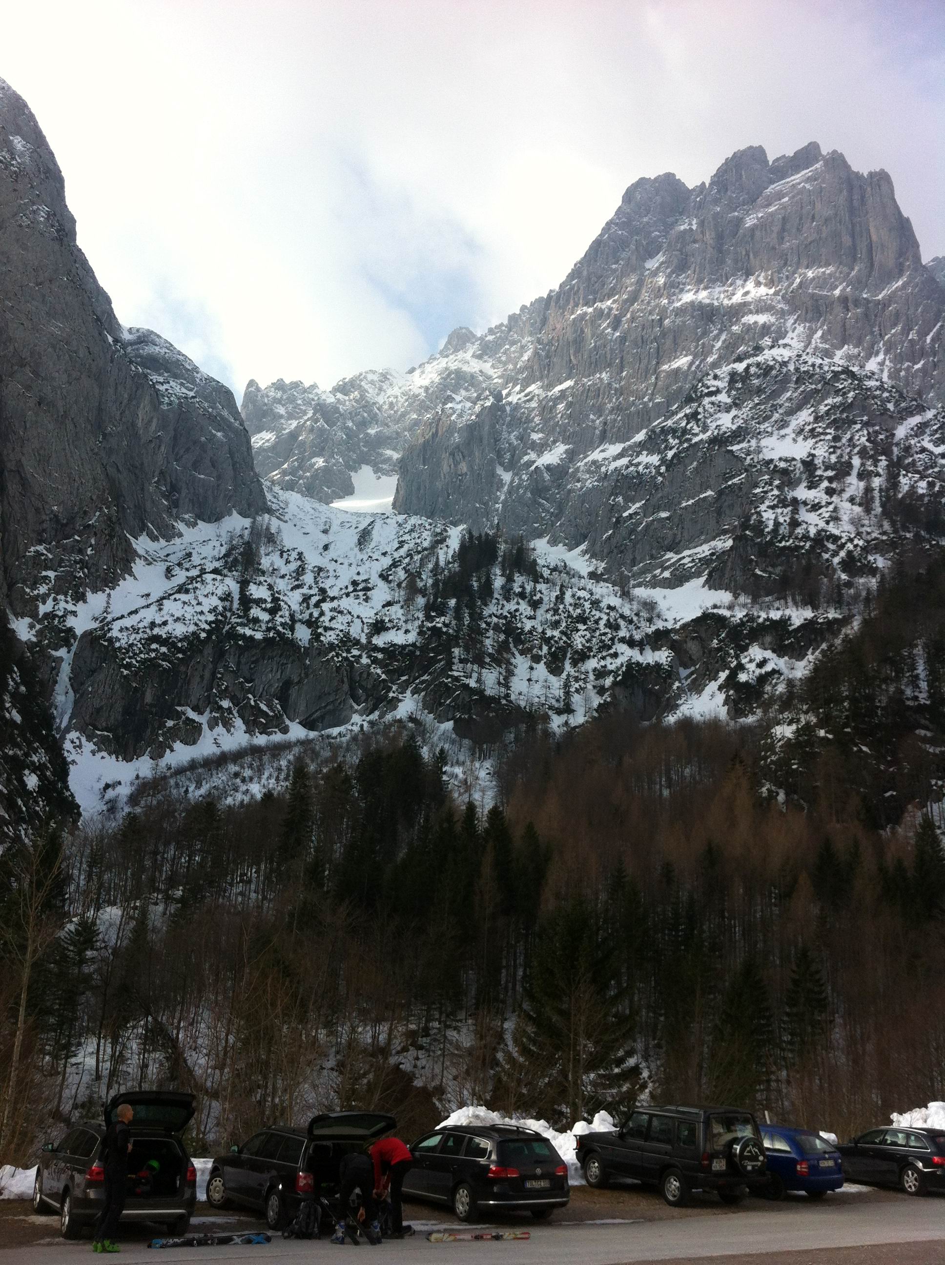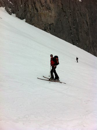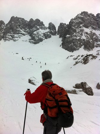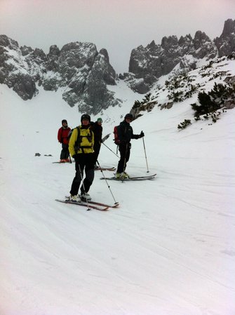 Einer der großen Klassiker im Wilden Kaiser - diese Tour durch die spektakulär zerklüftete Felslandschaft im Kaisergebirge bietet oft Firn bis spät ins Frühjahr. Die Harscheisen waren am Ende nicht verkehrt.