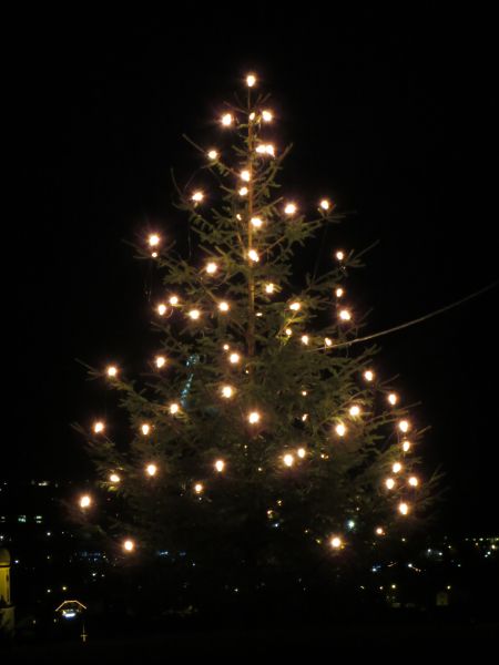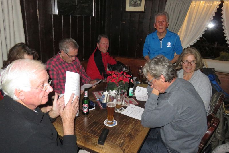 Schönes Wetter und kein Schnee begleiteten uns hinauf. Wir sangen Weihnachtsliedern und Siegi gab sein Adventsgedicht zum besten: