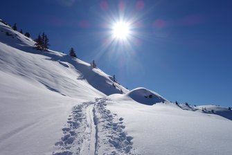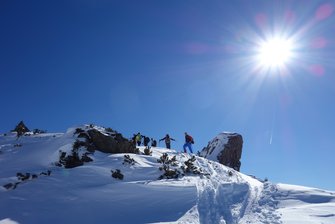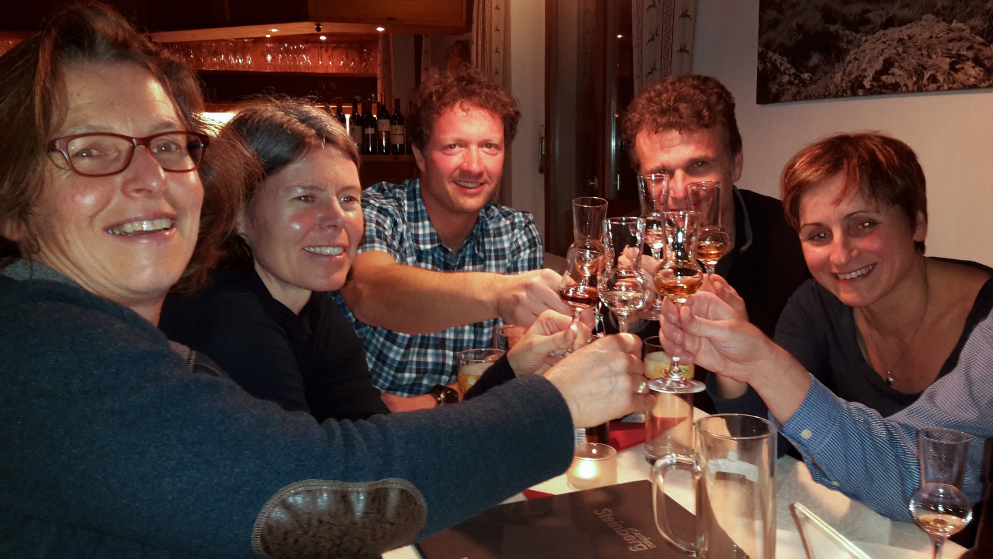 Jubiläumsverhältnisse zum 10jährigen! Das Gasthaus Steinberg ist ein tolles Quartier, es geht von der Haustür mit den Skiern weg - eigentlich wie eine Hütte, nur das Essen ist besser!! Klasse-Touren rund ums Haus. Speziell die Steinbergstein-Überschreitung ist das Saisonhighlight. Und netterweise gabs am Freitag noch kräftigen Schneenachschub fürs Wochenende - was will man mehr!