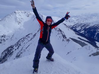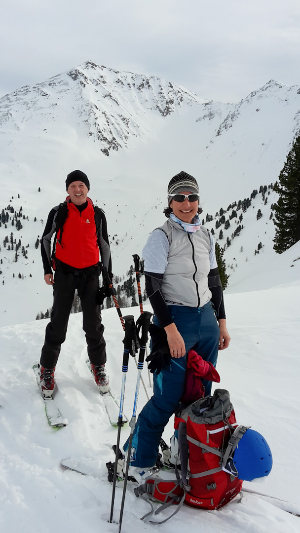 Eine zügige Skitour war es auf den Gamskopf, die beliebteste Tour im Alpbachtal. Zügig und steil die Hänge. Und sehr zugig der Gipfelgrat da hat der Föhnsturm sauber drüber gepfiffen!
