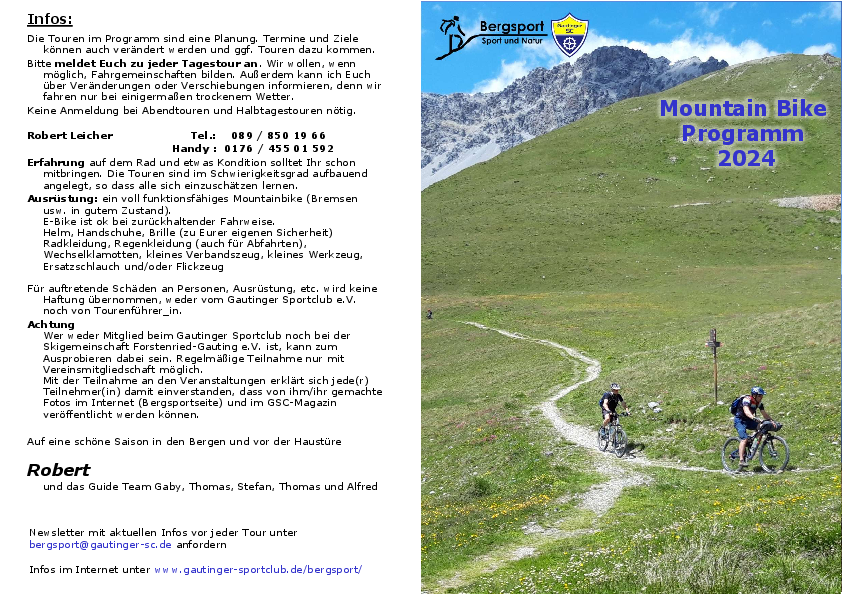Wie schon immer bei unseren Touren sind die Termine flexibel - bei Sauwetter macht die schönste Biketour keinen Spaß - in den Bergen kanns dann sogar gefährlich werden...