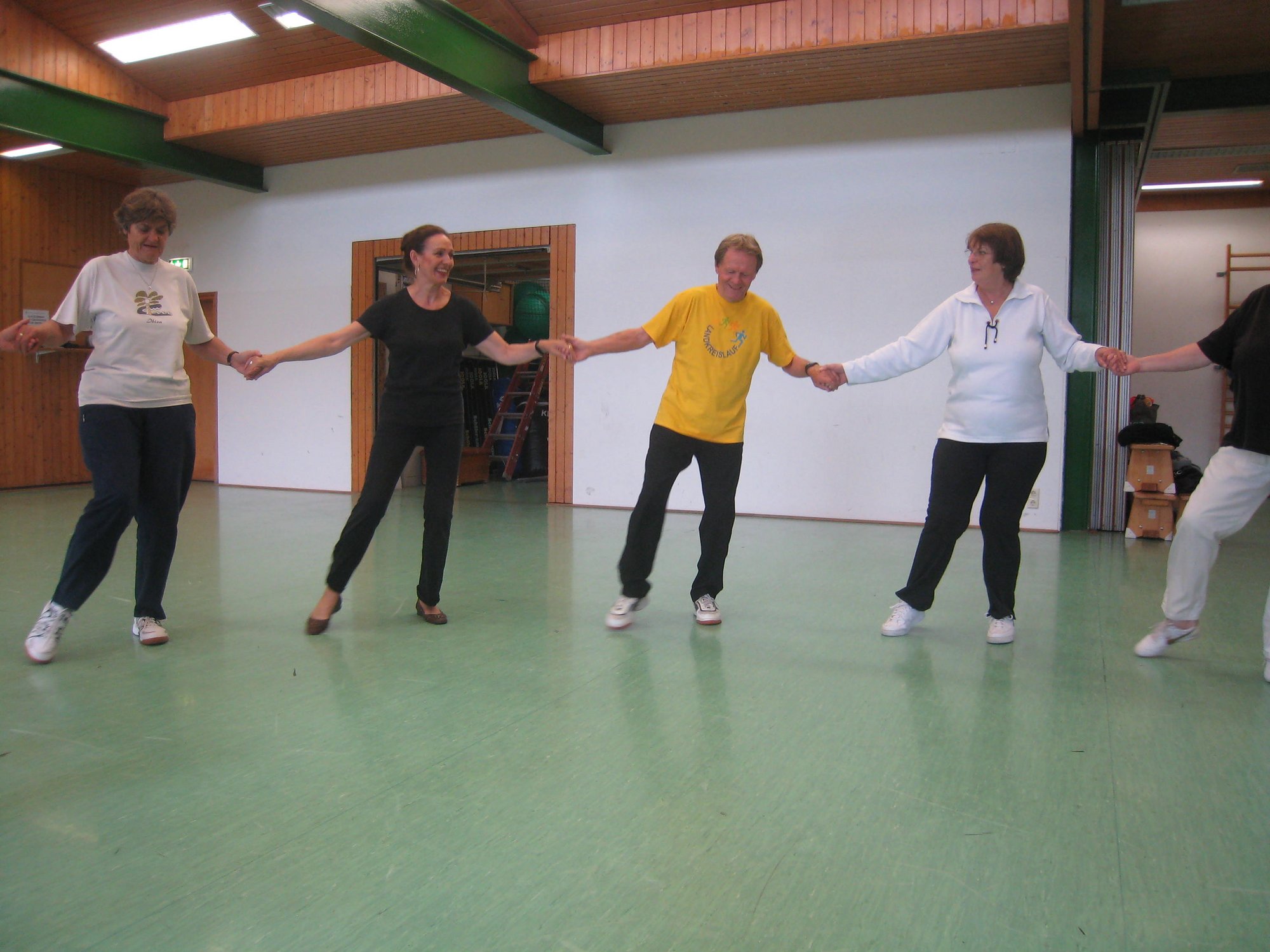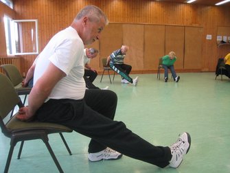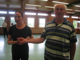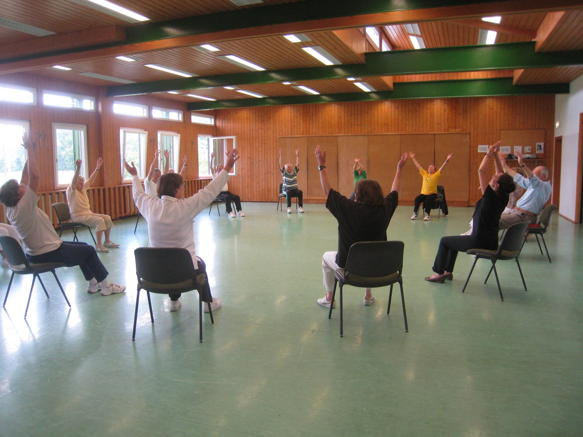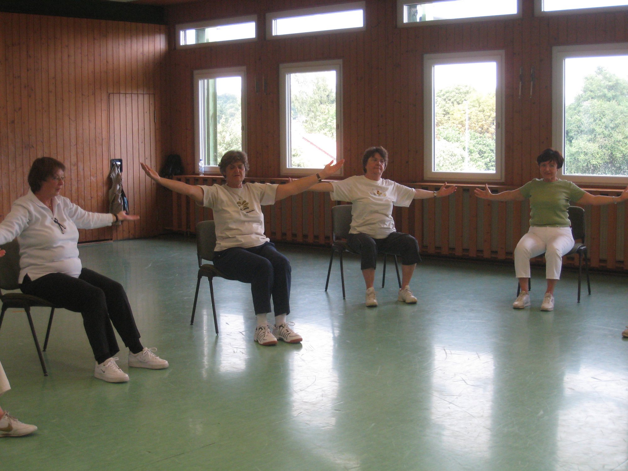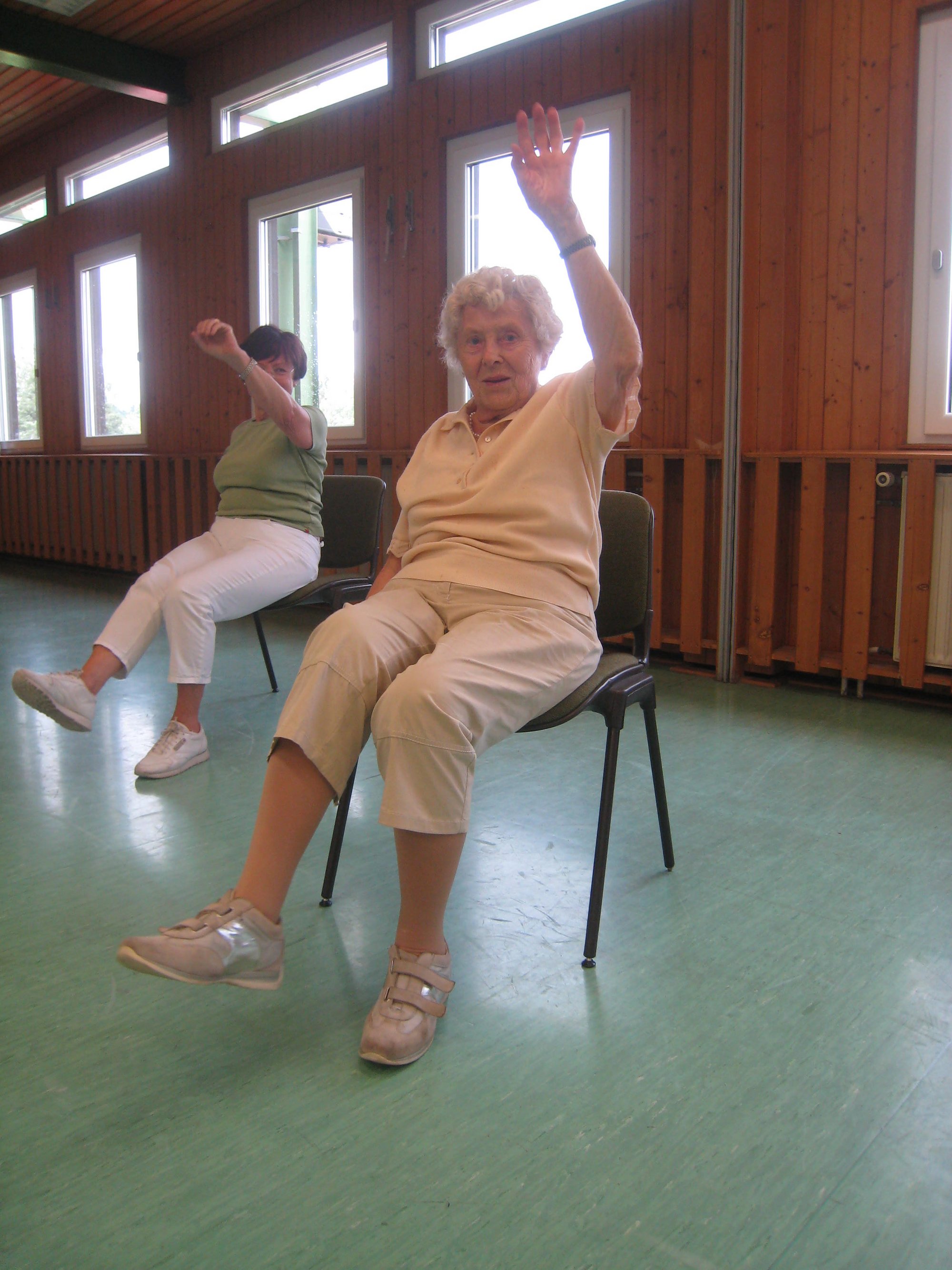 Herzsportgruppe Check, dann geht's los! Schwungvolles Aufwärmen Was sagt der Puls dazu? Schwitzen im Sitzen... So sieht's beim Profi aus... Und Spaß macht's auch! Die 90 locker überschritten und sooo fit!!! Dehnen muss sein