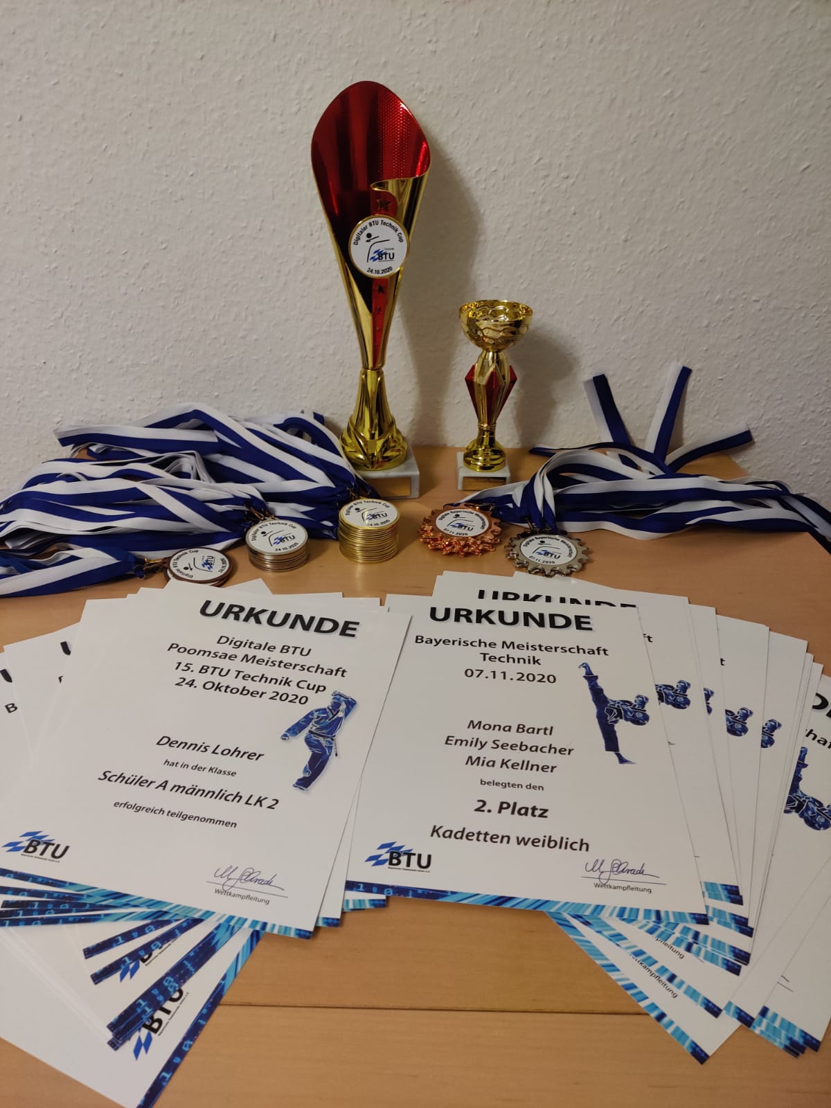 - NT LK1: Emily (Einzel -17w), Steffi (E. -30w), Mona+Fabian (Paar -17), Fabian+Dirk (Family Poomsae)
