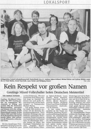 | 03/04 | 3. Platz Oberbayerische Meisterschaft, 3. Platz Bayerische Meisterschaft Mixed |