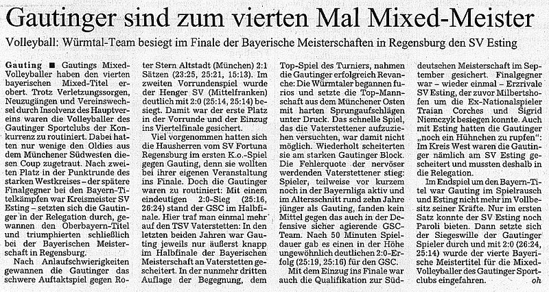 Die gesammelten Ergebnisse der Bayerischen Meisterschaften gibt es im Archiv des Bayerischen Volleyballverbandes.